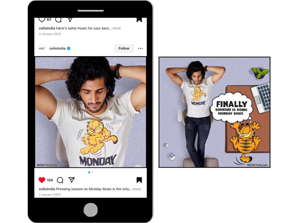 Celio is a brand known for its effortless charm. Garfield is a cat known for its sarcasm and laziness. In other words, they’re worlds apart.