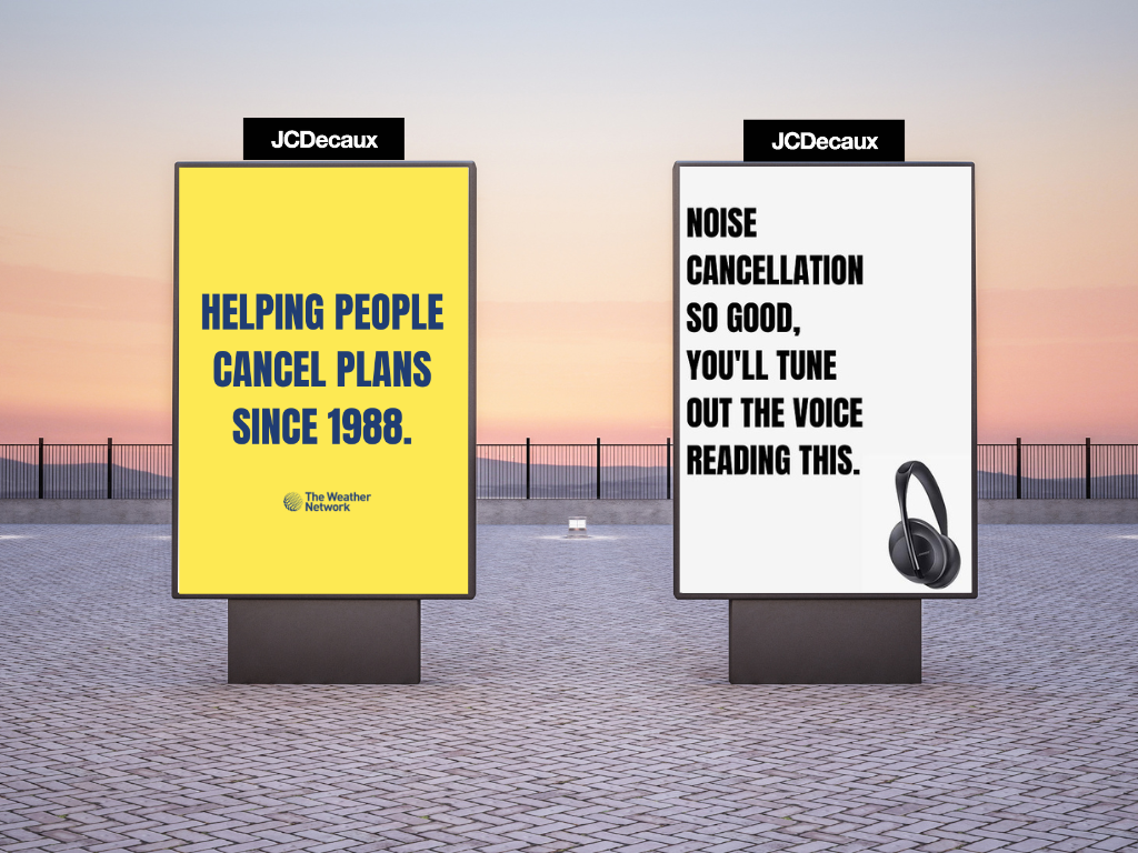 Headlines written for The Weather Network and Bose in the copywriting module at Xaviers Institute of Communications, Mumbai